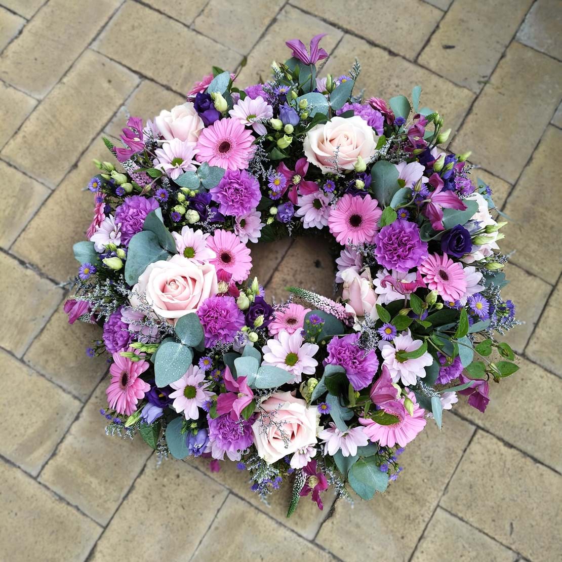 I denne smukke rundpyntede krans får du det klassiske udtryk, som du kender fra en rundpyntet oasiskrans.