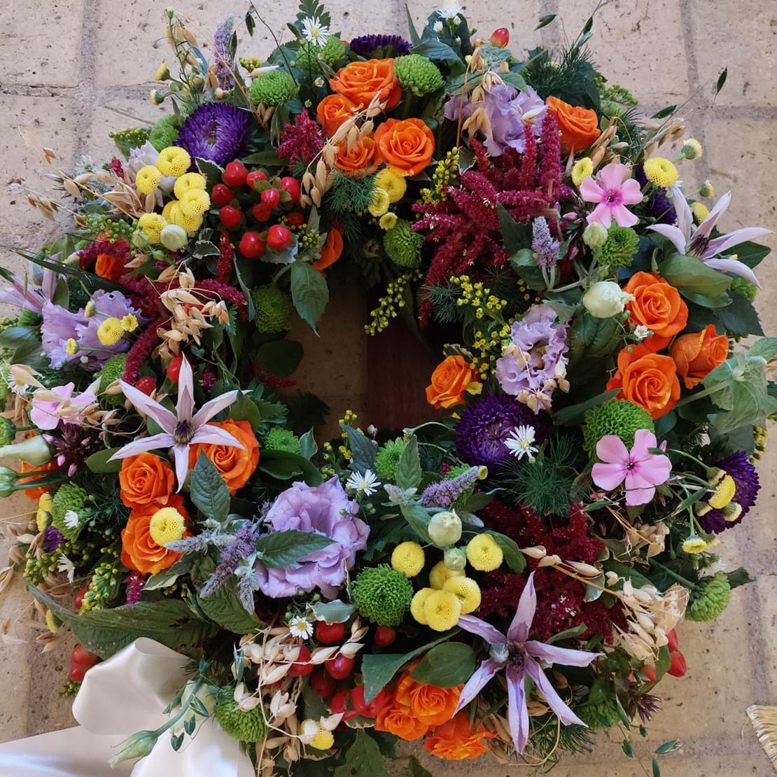 Små og store blomster er kombineret så det giver et flot sammenspil, og en mere intens farveoplevelse. Denne ligger også fint ude på kirkegården.