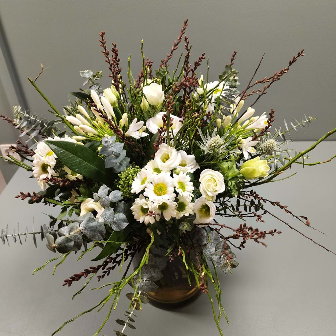 Foråret betyder lysere tider, og hvorfor ikke omfavne det med en dejlig forårsbuket. Den bindes med blomster i flotte lyse nuancer og et friskt udvalg af blandet grønt.
